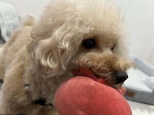 沢山持ってきていただいていたおもちゃでも楽しく遊んでいたムギちゃん。