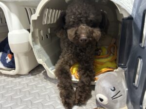 リフレッシュしたら自分のクレートで眠くなってきたエマちゃん。